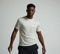 New Balance Athletics Printed T-Shirt in Beige. Suitable for both performance and everyday wear, this short-sleeved tee from New Balance has an all-over nature-inspired print for extra kudos. Made with NB ICEx fast-drying technology that helps you stay cool and dry, pindot poly knit mesh for a great lightweight feel, rib crew neck collar and reflective NB logo to left chest. Beige Size - 2XL