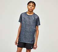 New Balance Junior Athletics Trail AOP T-Shirt in Graphite. Cut into a regular fit from 100% polyester fabric with a slight shiny sheen, this short-sleeved tee from New Balance is the ideal addition to your activewear collection. With a comfy rib crew neck collar, straight cut hem, eye-catching all-over contrast print and famous New Balance NB logo to left chest. Grey Size - M/B