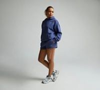 New Balance Womens Linear Fleece Shorts in Dream State. Running straight into your sporty attire collection, these sublime fleece shorts from New Balance are great for the gym, casual wear or off duty lounging binging the latest box sets. With an elasticated and adjustable drawstring waistband for a secure snug fit, open side pockets, contrast 'New Balance Athletics Club' motif to left leg and NB logo to reverse. Blue Size - XS