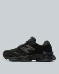 New Balance 9060 Trainers in Black. The New Balance 9060 redefines the classic 99X series by blending refined style with forward-thinking innovation. Drawing inspiration from the futuristic Y2K tech aesthetic, this model takes familiar 99X elements and reimagines them with modern flair. Expanded sway bars, derived from the 990, are integrated across the upper for dynamic motion, while wavy lines and exaggerated proportions on the sculpted pod midsole highlight advanced cushioning technologies like ABZOR...