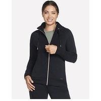 Skechers Skechluxe Elevate Full Zip Jacket - Black Envelope yourself in pure, silky comfort wearing Skechers SKECHLUXE ELEVATE Full Zip Jacket. This extraordinarily soft outerwear piece is made from our premium SKECHWEAVE ELEVATE fabric and features both a mock neck collar and drawcord hood with front slash pockets and raglan sleeve seams. Part of a coordinating apparel collection. Material Content: 53.0% Rayon,39.0% Polyester,8.0% Spandex Washing Instructions: Machine Washable Size Conversion: XS = UK ... - Manufacturers part number: JA196 BLK