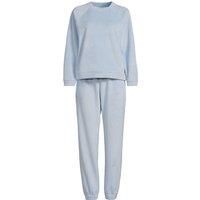Crafted from soft, ribbed velour with a relaxed fit, this set feels like a gentle hug at the end of the day. Whether lounging or sleeping, this set combines effortless comfort with subtle elegance - your new go-to for restful nights and cosy mornings. | Lands' End Women's Ribbed Velour Pyjama Set in Blue | Size: 20-22