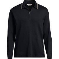 Classic polo style meets modern charm with contrasting stripes for a fresh, fashionable twist. The long sleeves offer warmth, making it ideal for transitional seasons, while the soft, comfortable fabric ensures all-day wearability. Pair with chinos for the office or jeans for off-duty days. | Lands' End Men's Long Sleeved Refined Zip Polo Shirt with Tipped Collar in Black | Size: Small