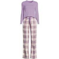 Our sleep set is not only comfortable, but dreamy too. The lightweight cotton knit top has stretch for easy movement and comfort. The plush flannel bottoms are as cosy as they come. A perfect gift for yourself or someone who deserves the softest relaxation. | Lands' End Women's Plus Cotton-Modal/Flannel Pyjama Set in Violet | Size: 20