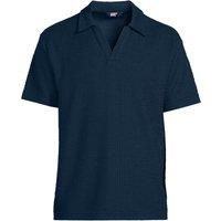 Blending relaxed style with travel-friendly texture, this polo is ready for everything on your summer agenda - from sunny weekend get-togethers to daytrips and getaway adventures. | Lands' End Men's Textured Johnny Collar Polo Shirt in Dark Navy | Size: XL