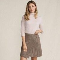 This modern Checkered pleated skirt sheds heaviness and traditional charm for a look that's fresh and effortlessly comfortable. The decorative buckle keeps its shape and adds an unexpected edge to a timeless silhouette. | Lands' End Women's Petite Pleated Checkered Skirt in Tan | Size: 12