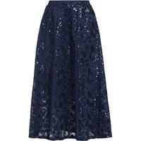 A statement midi skirt designed for every occasion in your diary from festive markets to evening event. Dress it up with a silky top, contrast it with a cosy Fair Isle and winter boots. A statement piece to reach for whenever the day asks for extra sparkle. | Lands' End Women's Sequin Lace Midi Skirt in Navy | Size: 14-16
