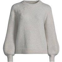 With its gentle wool-touch fabric and charming floral embroidery, this sweater brings warmth and elegance to cooler days. The flattering balloon sleeves and versatile cut offer both comfort and effortless style. | Lands' End Women's Petite Wool Touch Balloon Sleeve Sweater with Flowers on Shoulder in Ivory | Size: 10-12