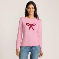 Bring a touch of holiday cheer to your wardrobe with our Fine Knit Christmas Jumper. Featuring a classic round neck, long sleeves, and a charming knitted festive motif, it's designed for both style and comfort. Celebrate the season in cosy elegance. | Lands' End Women's Fine Knit Christmas Jumper in Pink | Size: 14-16