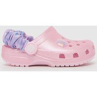 The Classic Scrunchie Shell Clog arrives from Crocs in toddler sizes! The lightweight and cushioned design features a pale pink colourway with a pearlescent finish. Complete with a purple scrunchie heel strap and shell Jibbitz charm for a summer vibe. - Manufacturers part number: Crocs_8510413360-200