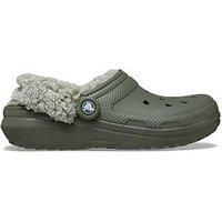 Crocs Classic Fleece Lined Clog -Dusty Olive Everybody loves the comfort of the Crocs Classic Clog - and our toasty fleece lined version keeps the feeling going in all seasons. The fleece lining and back strap help keep toes and heels toasty warm, indoors or out. Croslite foam construction keeps them light and easy to wear. And the pivoting heel strap gives you a secure fit, or push it forward to just step in and go. Enjoy cozy style and comfort for around town or staying in. Material Content: 65% Therm...