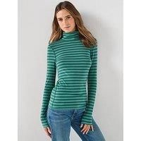 FREE PEOPLE Good Turtle Stripe Long Sleeve Top Size & Fit True to size - order your usual size Regular fit Available in sizes S - XL Details Good Good Turtle Stripe Long Sleeve Top by FREE PEOPLE Green Ribbed fabric Striped Long sleeves Turtleneck Material & Care Material Content: LDS KNIT PULLOVER 47% COTTON 46% LYOCELL 7% ELASTANE
