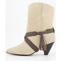 FREE PEOPLE Bronte Belt Wrap Boot Size & Fit True to size - order your usual size Standard fit Heel height: approx. 7cm / 2.7" Ankle height design Details Bronte Belt Wrap Boot by FREE PEOPLE Beige Premium suede upper with a relaxed, slouchy silhouette Stitched leather wrap detail with tassel ends for added charm Pointed toe for a refined, feminine edge Cone heel for a flattering lift and all-day wearability Pull-on design for easy styling Material & Care Material Content: LADIES BOOT LEATHER UPPER, RU...