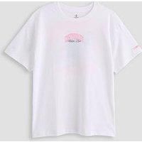 Converse Junior Girls Chuck Taylor Boyfriend T-Shirt Size & Fit True to size - order your usual size Boyfriend fit Available in sizes 8-10 - 13-15 Years Details Junior Girls Chuck Taylor Boyfriend T-Shirt by Converse White Logo print on chest and back Crew neck Short sleeves Material & Care Material Content: 60% Cotton 40% Polyester