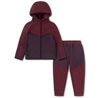 Nike Kids Unisex Tech Fleece Full Zip Tracksuit - Burgundy Red