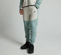 Nike Tech Fleece Joggers in Dusty Sage and Light Orewood Brown. Classic Tech Fleece joggers providing superior warmth and comfort cut from Nike's famous low-bulk fabric. Roomy through the thigh and tapered at the knee for a clean and tailored look. With an elasticated adjustable drawstring waistband and convenient pockets. Articulated seams, tapered Tech pocket and a Nike Futura logo to top things off. The premium smooth-on-both-sides fleece has the same lightweight, warm and soft feel as it always has...