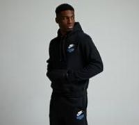 Nike SU25 Authorized Personnel Overhead Hoodie in Black and White. Made from a super-soft and comfortable fleece fabric, this staple layering classic from Nike is the ideal throw-on-and-go garment. Overhead-style hoodie with adjustable tipped drawstring hood complete with eyelets, ribbed cuffs and hem and front kangaroo pouch pocket for your hands and/or small belongings. Contrast Nike branding to left chest and large matching print to reverse. Black Size - M