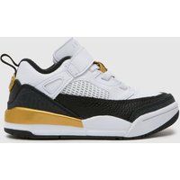 Nike Jordan presents the Spizike Low trainer in junior sizes! This court profile is crafted with leather, man-made and fabric for durable wear. The black and white colourway boasts striking gold accents, complete with supportive foam cushioning. - Manufacturers part number: Nike Jordan_2618871920-280