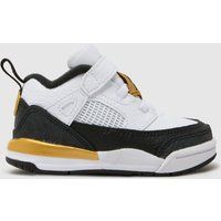 The toddler Nike Jordan Spizike Low trainers arrive from Nike Jordan! Featuring a striking black and white colourway with gold accents. Crafted with premium leather, the upper features a hook and loop closure for fuss-free wear. - Manufacturers part number: Nike Jordan_2518871920-265