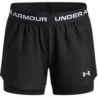 UNDER ARMOUR Junior Girls Training Tech Play Up 2In1 Shorts Size & Fit True to size - order your usual size Regular fit Available in sizes XS - XL Details Junior Girls Training Tech Play Up 2In1 Shorts by UNDER ARMOUR Black/White Shorts Elasticated branded waistband Stretchy Breathable Quick drying 2 in 1 design Logo print Material & Care Material Content: BODY: 100% Polyester Washing Instructions: Machine Washable - Manufacturers part number: UA6004985