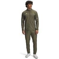 UNDER ARMOUR Mens Challenger Tracksuit Size & Fit True to size - order your usual size Full length Available in sizes S - 2XL Details Mens Challenger Tracksuit by UNDER ARMOUR Green Football tracksuit Long sleeves Zip up fastening Funnel neck Elasticated waist Material & Care Material Content: BODY: 100% Polyester Washing Instructions: Machine Washable - Manufacturers part number: 6004052