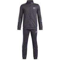UNDER ARMOUR Junior Boys Training UA Icon Knit Tracksuit Size & Fit Loose fit, fuller cut Tapered leg Available in sizes S - XL Details Junior Boys Training UA Icon Knit Tracksuit by UNDER ARMOUR Grey 2-piece set Smooth tricot knit exterior with a brushed interior for soft comfort and warmth Material wicks sweat and dries really fast Long sleeve jacket with high neck Open hand pockets Ribbed cuffs and hem Ribbed waistband bottoms with external drawcord Material & Care Material Content: BODY: 100% Recycl... - Manufacturers part number: WM2OO