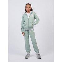 New Balance Junior Girls Stacked Logo Zip Hoodie And Jogger Set Size & Fit Available in sizes 7 - 16 years Details Junior Girls Stacked Logo Zip Hoodie And Jogger Set by New Balance Green Zip up long sleeved hooded jacket Coordinating joggers with elasticated waistband and cuffs Hand warmer pockets Material & Care Material Content: 60% Cotton 40% Polyester Washing Instructions: Machine Washable - Manufacturers part number: WMC06