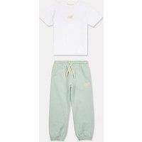 New Balance Younger Girls Floral Logo Tee And Jogger Set - Green
