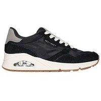 Throwback jogger style meets comfort in Uno Vintage Dayz Trainers. This lace-up retro style jogger features a suede and mesh upper with a Skechers Air-Cooled Memory Foam insole and a translucent Skech-Air airbag midsole. Skechers Air-Cooled Memory Foam cushioned comfort insole Skech-Air visible airbag midsole Fashion sneaker design | Skechers Women's Uno Vintage Dayz Trainers in Black | Size: 4 - Manufacturers part number: WNV9W