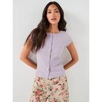FREE PEOPLE Most Wanted Ribbed Button Up Top Size & Fit True to size - order your usual size Slim fit Available in UK sizes: XS: 4-6; S: 8-10; M: 12-14; L: 16-18; XL: 20 Details Most Wanted Top by FREE PEOPLE Purple Ribbed fabric Short sleeves Round neckline Picot trim detail Button front fastening Material & Care Material Content: LDS KNIT CARDIGAN 60% COTTON 35% POLYESTER 5% SPANDEX