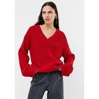 French Connection V-Neck Knit Jumper Size & Fit True to size - order your usual size Regular fit Available in sizes XS - XL Model is 5'10" and wears a UK size 8 Details V-Neck Textured Knit Jumper by French Connection Red Knitted Long sleeves V neckline Ribbed cuffs and hem Material & Care Material Content: 55% Polyester, 21% Acrylic, 20% Polyamide, 4% Wool Washing Instructions: Machine Washable