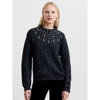 French Connection Embellished High Neck Long Sleeve Cosy Jumper Size & Fit True to size - order your usual size Regular fit Available in sizes XS - XL XS = 8, S = 10, M = 12, L = 14, XL = 16 Model is 5'8" and wears a UK size 8 Details Embellished High Neck Long Sleeve Cosy Jumper by French Connection Grey High neckline Long sleeve Button back fastening Ribbed cuffs and hem Pearl and diamante embellished Material & Care Material Content: 52% Polyester, 23% Acrylic, 12% Polyamide, 12% Wool, 1% Elastane ...