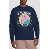 PEPPA PIG TV UNISEX SWEATSHIRT: Express your authenticity with a look as unique as you are. Designed for daily wear, our sweatshirt showcases a breathable all-season mid weight weave in a versatile tagless top that pairs with everything from freshly pressed jeans, to your favourite sweatpants. Beyond basic, our long-sleeve sweatshirt is made to go the distance. | Hasbro Peppa Pig - Daddy Pig Night Feed Duty Sweatshirt, Navy - Manufacturers part number: Hasbro_0199474150912