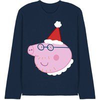 PEPPA PIG UNISEX LONG SLEEVE T-SHIRT: Crafted from premium ringspun cotton, our long sleeve T-shirts are the epitome of timeless style. Embrace your individuality with a look as distinct as you are. Created for everyday wear, our long sleevetees feature a breathable all-season mid-weight weave, ensuring comfort in a versatile tagless design. Beyond ordinary, this long-sleeve tee is built to last. | Hasbro Peppa Pig Daddy Pig Santa Hat Long Sleeve T-Shirt, Navy - Manufacturers part number: Hasbro_0199756485701