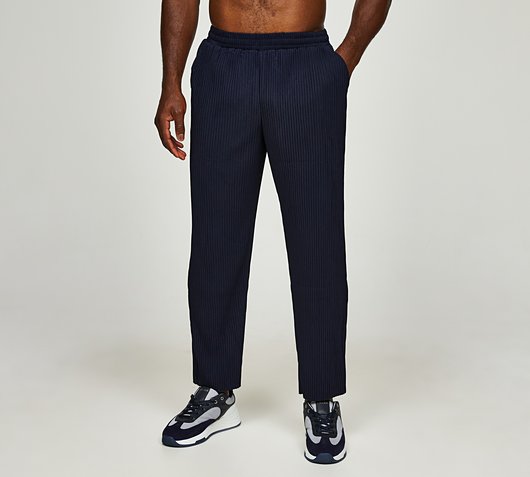 Belier Pleated Pants in Navy. Experience unparalleled comfort and style with the Belier Pleated Pant. These navy pants feature a refined pleated design that adds a touch of sophistication to a relaxed fit. The lightweight, breathable fabric ensures all-day comfort, making them perfect for both lounging and casual outings. With an elastic waistband, these pants provide a secure yet flexible fit, ideal for any body type. Pair them with a casual tee for a laid-back look or dress them up with a button-down ...
