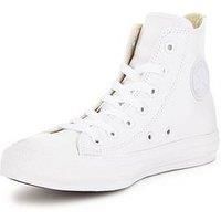 Converse Chuck Taylor All Star Leather Hi-Top Trainers Size & Fit Standard fit Available in sizes 6 - 12 Details End use: Lifestyle Chuck Taylor All Star Leather Hi-Top Trainers by Converse White The go-to staple made with super-soft leather, so you can make them as refined or as edgy as you want. You write the story. Luxe leather for a smooth look and feel Hi-profile for classic coverage Vulcanized rubber sole for increased traction Medial eyelets enhance airflow Classic All Star ankle patch Material &...