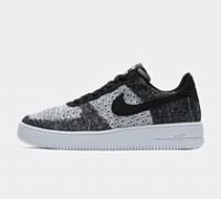 Nike Air Force 1 Flyknit 2.0 Trainers in Black and Pure Platinum. The Nike Air Force 1 Flyknit 2.0 reimagines the iconic 1982 court classic with a featherlight design. Featuring Flyknit construction that contours to your foot, it offers the timeless AF-1 look with modern, lightweight comfort. Nike Air technology ensures superior cushioning, while a durable foam midsole doubles as the outsole to reduce weight. Strategically crafted panels and exaggerated pivot points maintain the classic design lines, de...