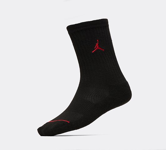 Jordan Infant Jumpman 3 Pack Socks in Black and Red. Designed to team up perfectly with any of the silhouettes of past or present, signature Jordan Jumpman branding with Dri-FIT technology to wick away sweat, leaving your feet dry and comfortable. Arch compression offers a secure, support fit with reinforced heel and toes for added durability. Pack of 3 pairs. Black Size - 9.5-2.5
