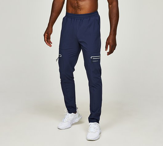 Closure London Reflective Zip Track Pants in Navy. Lightweight and breathable and cut into a sleek modern fit that's great for an active lifestyle. With an elasticated adjustable concealed drawstring waistband to attain that optimal fit, open cuffs, 2 open side pockets and 2 secure zip fastening leg pockets complete with reflective trim to make sure you stay safely visible after the sun goes down. Reflective Monterrain logo to under left leg pocket. Regular fit. Navy Size - L