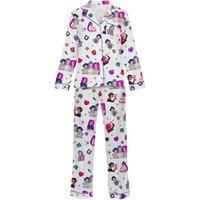 Ultra-Soft & Breathable: Made with a premium 95% polyester and 5% elastane blend for comfort all season. Colour Options Choose from Pink or White. Easy Care: Vibrant colours stay bold wash after wash (machine wash at 30 degrees). Exclusive K-Pop Inspired Design: Iconic K-Pop Demon Hunters print for standout comfort. Versatile Styling: Wear as coordinated lounge set or as separate pieces. What's Included£: Receive a K-Pop Demon Hunters inspired top and bottoms pyjama set! Size Options: Available in Smal...
