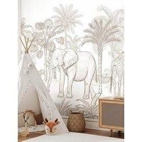 The Very Collection Safari Mural Natural Transform your space into a serene adventure with this safari-inspired wall mural. Featuring elephants, zebras, and graceful palm trees illustrated in exquisite detail, that create a timeless, storybook feel. The natural soft tones bring warmth and sophistication, making it perfect for nurseries, playrooms, or family spaces. Offering a Paste the Wall application, it's easy to hang and remove and is designed to repeat for larger wall sizes. Depth: 7 CM Height: 52...