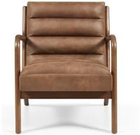 A modern retro armchair that would suit any contemporary or traditional styled living room. Rich coloured wood that combines perfectly with the comfy faux leather fabric creating warmth. This chair features curved arm rests, an extremely comfy padded seat and back cushion and thick ribbed detail to add a touch of vintage retro. Part of the Leah collection. Material:PU faux leather. Made from 100% polyester. Wooden feet. Fixed seat with foam filling. Fixed cushion(s) with foam filling. Dimensions:Size H7...