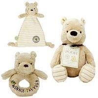 Disney CLASSIC POOH BUNDLE It is time for little ones to head to Hundred Acre Wood with Disneys Winnie the Pooh for some play time and cuddly time with this adorable trio of Winnie the Pooh Soft Toy, Comforter and Ring Rattle. Based on the famous character from A.A Milnes heart-warming Tales from the Hundred Acre Wood storybooks, these classically-styled Winnie the Pooh infant toys are made from the highest quality, baby soft fabric with beautifully embroidered features and are perfect for cuddling and ... - Manufacturers part number: R4RQ6