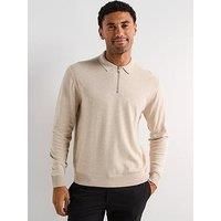 Jack & Jones Emil Long Sleeve Half Zip Knitted Polo Shirt Size & Fit True to size - order your usual size Regular fit Available in sizes S - 2XL (S:38", M:39", L:41", XL:44", 2XL:47") Model is 6'1" and wears a size Medium (M) Details Emil Long Sleeve Half Zip Knitted Polo Shirt by Jack & Jones Light Beige Knitted fabric Long sleeves Half zip placket Flat polo neck Ribbed cuffs and hem Material & Care Material Content: 60% Cotton, 20% Nylon, 20% Viscose, Washing Instructions: Machine Washable