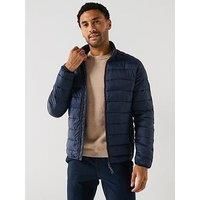 Jack & Jones Bradley Lightweight Padded Size & Fit True to size - order your usual size Regular fit Available in sizes S - 2XL (S:38", M:39", L:41", XL:44", 2XL:47") Details Bradley Lightweight Padded by Jack & Jones Navy Stand up collar Long sleeves Zip up fastening Side slip pocket with zip fastening Branded logo on sleeve Material & Care Material Content: 50% Nylon, 50% Nylon - Recycled, About the brand: