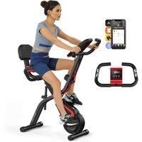 The indoor exercise bike is designed with low noise magnetic flywheel, elimilate noise 20db. 1-4 levels weight option for leisure exercise or warm up, 5-7 levels weight option for cardio workout or improve endurance, 8-10 levels weight option for shaping exercise or strengthen muscle. This foldable cycling machine is made of high quality steel frame, X-shape steel frame provide more stable and sturdy for you. Upgraded with broadened rear handlebar and backrest, the exercise bike is equipped with a widen...