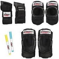 Wipeout Protective Pad Set - kids love customising their protective gear! Includes Multi-Sport Wristguards, Knee Pads & Elbow Pads, as well as 23 dry erase non-toxic markers for youngsters to add their own designs. They can also wipe clean and start again over and over! Designed for use across a multitude of roller sports, including Bikes, Skateboards, Scooters, Roller skates and Inline skates (roller blades). Wrist Guards - feature impact-resistant molded splints positioned on top and bottom of wrists ... - Manufacturers part number: WP4102