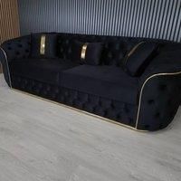 Ambassador 3-Seater Chesterfield Sofa Toronto Gold Trim Plush Velvet (No Frill Design) Elevate your living space with the Ambassador 3-Seater Chesterfield Sofa Toronto, a masterpiece that embodies luxury, comfort, and timeless design. Expertly inspired by Turkish craftsmanship, this elegant sofa blends classic Chesterfield charm with a sleek, modern touch, creating the perfect statement piece for any sophisticated home. Upholstered in premium plush velvet, the Ambassador Sofa exudes opulence while offer...