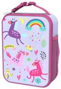 High quality printed design lunch bag with 3-sided easy access zip and external elasticated mesh pocket for bottles. It has a convenient write on name patch on base, securely hidden when carrying, yet easily visible when laid flat or stacked. The nylon carry strap on top has a split-release to hang or attach your bag conveniently anywhere, indoors or out. This lunch bag opens fully, with a padded and fully lined wipeable food safe insulated interior to make it easy to wipe clean and keeps food fresh for... - Manufacturers part number: I8LBVUNIC