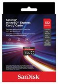 SanDisk microSD Express Card, 512GB mSD card, Read speeds up to 880 MB/s, Write Speeds up to 650MB/s, Sustained Write 220MB/s, SanDisk QuickFlow Technology, ThermAdapt, UHS-I, U3, C10